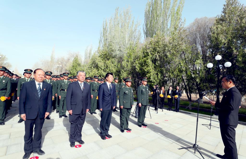 4月5日上午,塔里木大學莊重舉行向王震將軍銅像敬獻花籃儀式。人文學院黨委副書記雷長柱同志表態發言,表示要不忘王震將軍初衷,傳承紅色血脈,用胡楊精神育人,用兵團紅色文化來澆灌學生的心田,給學生心靈埋下真善美的種子。