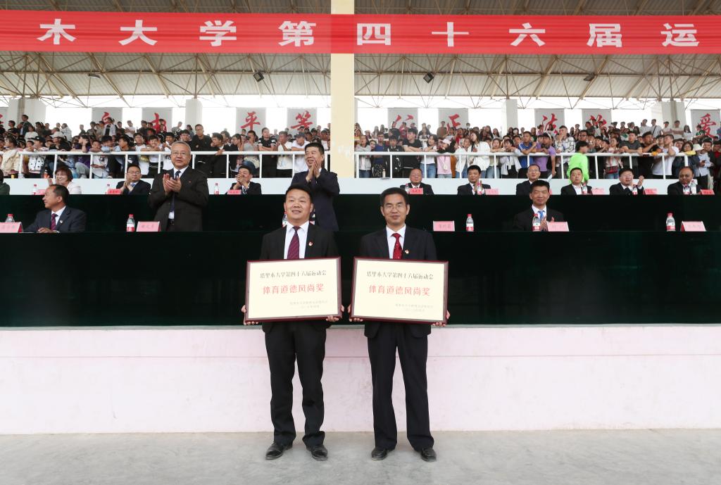 劉記宣讀了第四十六屆運動會“優(yōu)秀組織獎”、“體育道德風尚獎”獲獎單位。