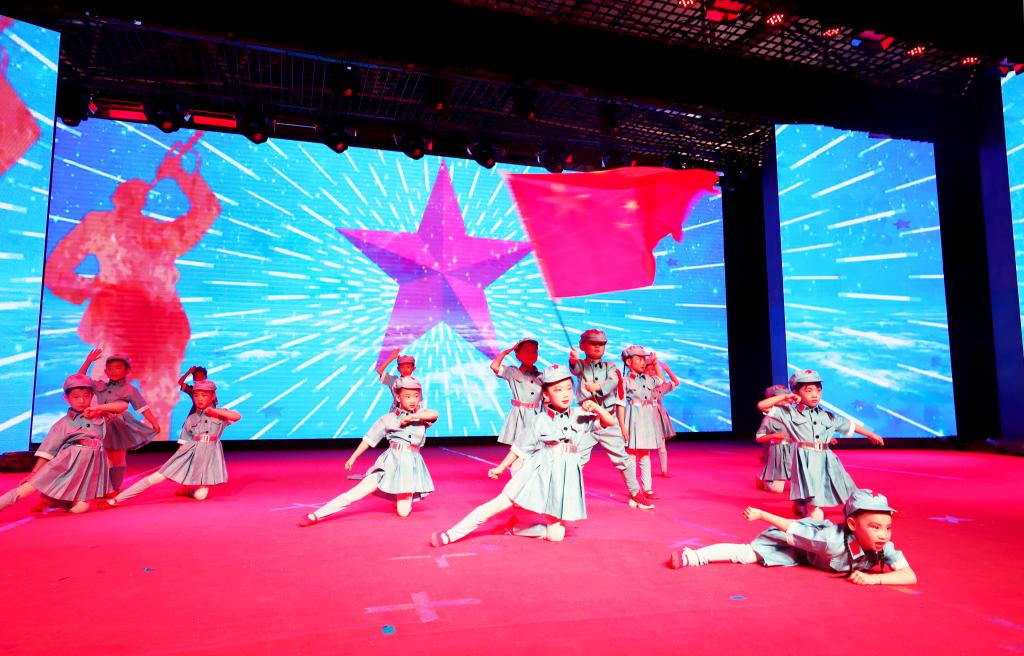 情緒舞《革命新一代》、《勞動最光榮》等節(jié)目,演繹了孩子們的團結(jié)心、愛國情、報國志,將匯演推向一個高潮。