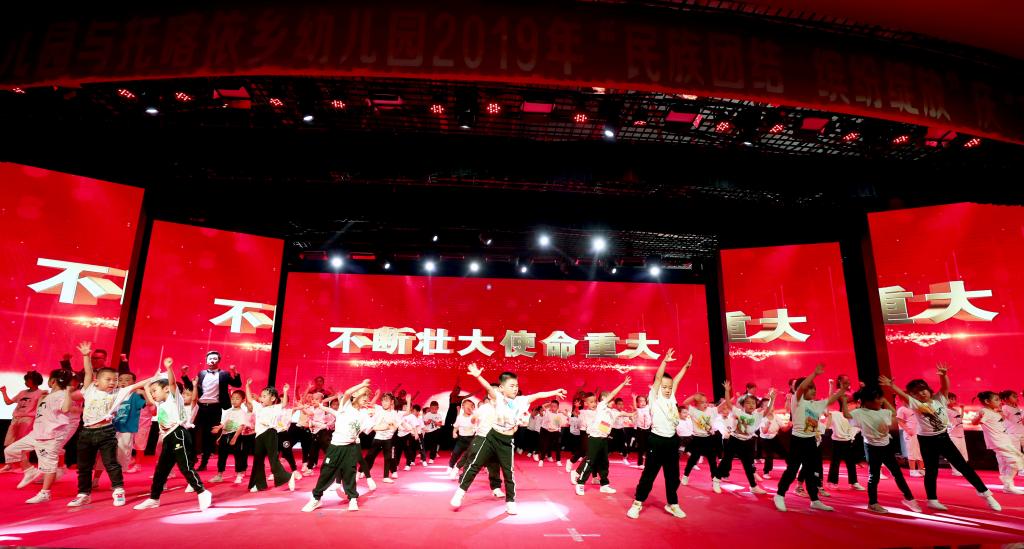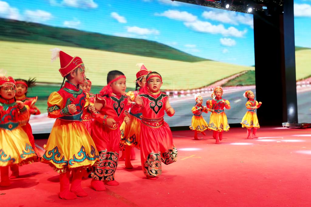 哈薩克族舞蹈《黑走馬》,維吾爾族舞蹈《娃哈哈》、《共慶六一》,傣族舞《竹林深處》,藏族舞《幸福格桑花》,蒙古舞《草原小駿馬》,各民族小朋友同臺演出,情感真摯濃厚,一顆顆民族團結(jié)的種子播撒在幼小的心田,將使孩子們在未來人生路上更加絢麗多彩。