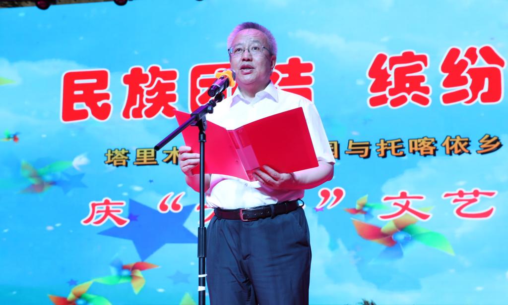 上午十點,塔里木大學幼兒園與托喀依鄉(xiāng)幼兒園共慶“六一”兒童節(jié)“民族團結(jié)繽紛綻放”主題文藝匯演在行政樓報告廳舉辦。塔里木大學黨委書記趙光輝,一師黨委常委、副師長馬榮華,塔里木大學副校長張利莉,黨委常委、副校長曲義勇,一師科技局副局長、托喀依鄉(xiāng)黨委副書記、鄉(xiāng)長艾尼瓦爾·玉素普,托喀依鄉(xiāng)鄉(xiāng)長阿布都·吐爾遜,各學院、機關部門領導,幼兒園全體師生及家長1000余人觀看演出。