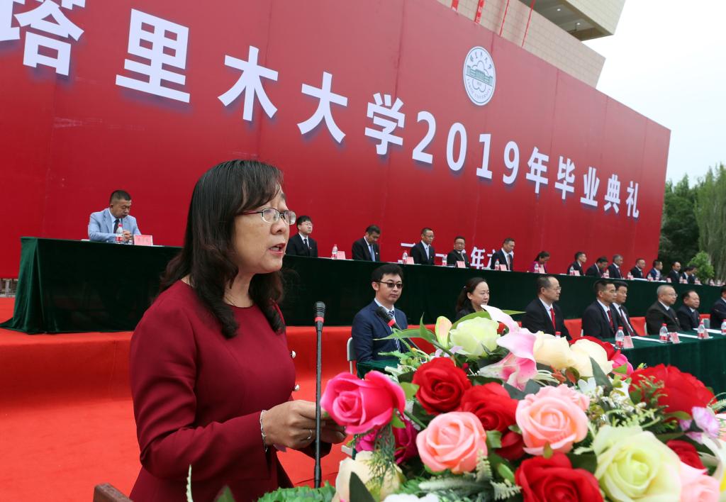 “今天,我們懷著無比激動和喜悅的心情,在這里隆重舉行2019年畢業典禮。共同見證你們的成功、分享你們的喜悅。”典禮上,趙光輝代表學校黨委和全體師生員工向2019屆畢業生表示最衷心的祝賀和最美好的祝福。希望同學們繼續踐行胡楊精神,執著追求夢想;繼續踐行胡楊精神,錘煉品德修為;繼續踐行胡楊精神,勇于砥礪奮斗。