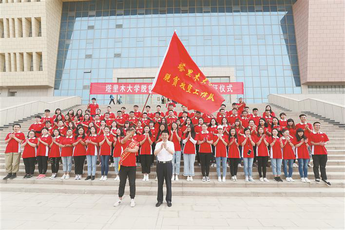 塔里木大學舉行脫貧攻堅授旗出征儀式(資料圖片)。