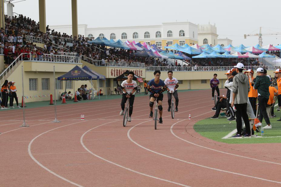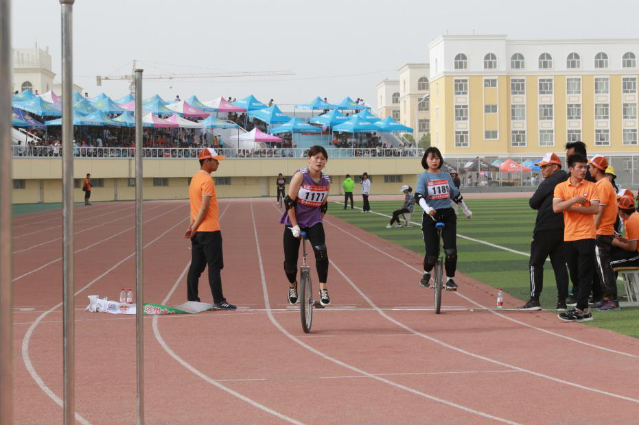 獨輪車800米的競賽,體現著每個參賽選手高超的技術、過硬的身體素質。趙燕同學在獨輪車800米女子小組預決賽中獲得第一。