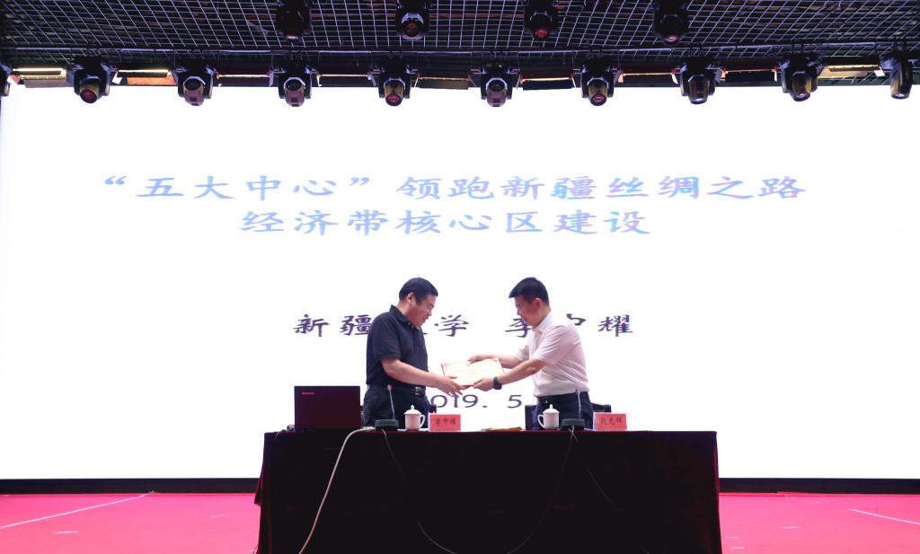 6月19日下午,新疆大學原黨委書記李忠耀教授在行政樓B座報告廳作了題為《五大中心領跑絲綢之路經濟帶核心區建設》專題學術報告。報告會由趙光輝書記主持,干部、師生代表共1100余人聽取了報告。