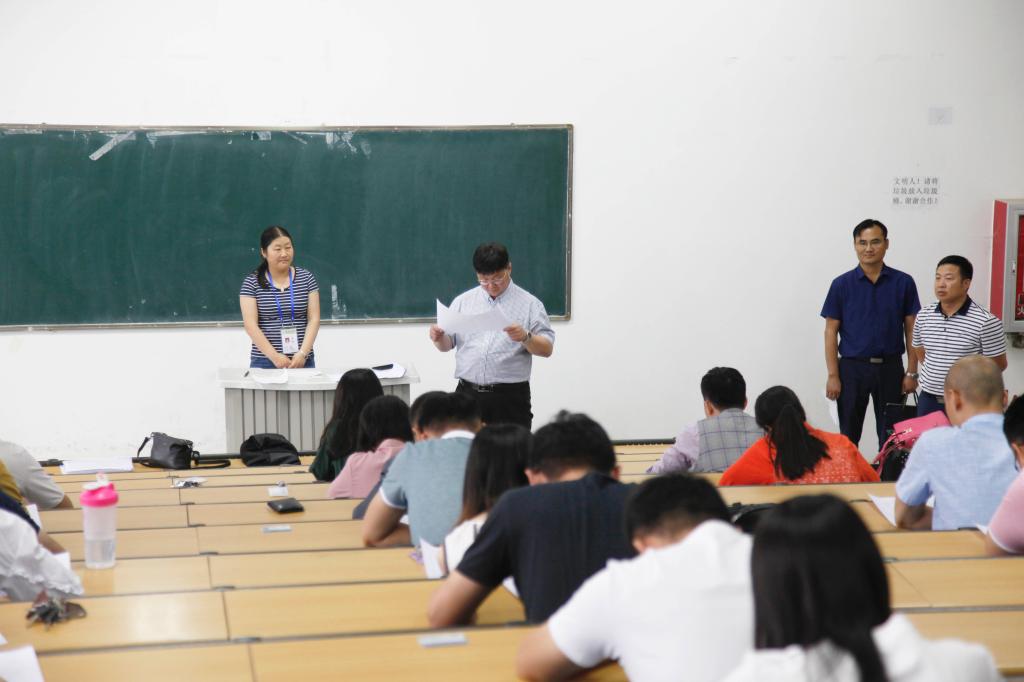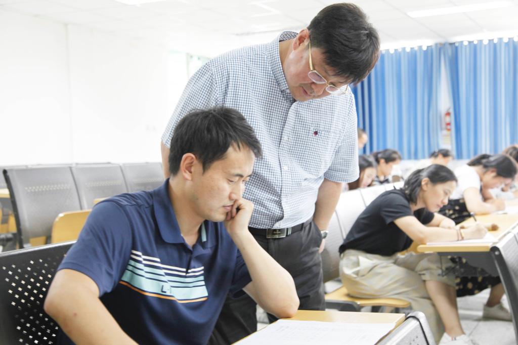 6月19日下午,張傳輝校長一行親臨雙語考試現(xiàn)場,對我校雙語考試工作進行了檢查指導。他深入7個考試現(xiàn)場,逐一巡視考場考風考紀,對整個考試工作詳細縝密的安排、學員們一絲不茍的答題和考務(wù)人員認真負責的敬業(yè)態(tài)度給予了肯定。