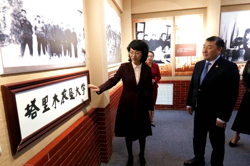 期間,季列烏奧夫?加納特?馬拉多維奇一行在張愛萍等領導陪同下參觀了校史館、“我們這五年”展覽館、新時代廣場、南疆現代農業先進技術研究院、分析測試中心、南疆干旱區特色作物遺傳改良與高效生產重點實驗室、南疆農業有害生物綜合治理兵團重點實驗室、南疆特色農產品深加工兵團重點實驗室、食品科學與工程學院等建設情況。