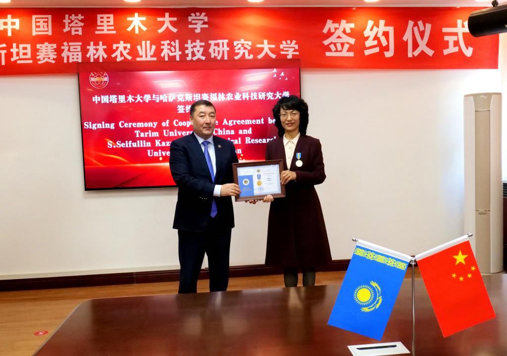 11月17日,塔里木大學與哈薩克斯坦賽福林農業科技研究大學合作協議簽訂儀式舉行。