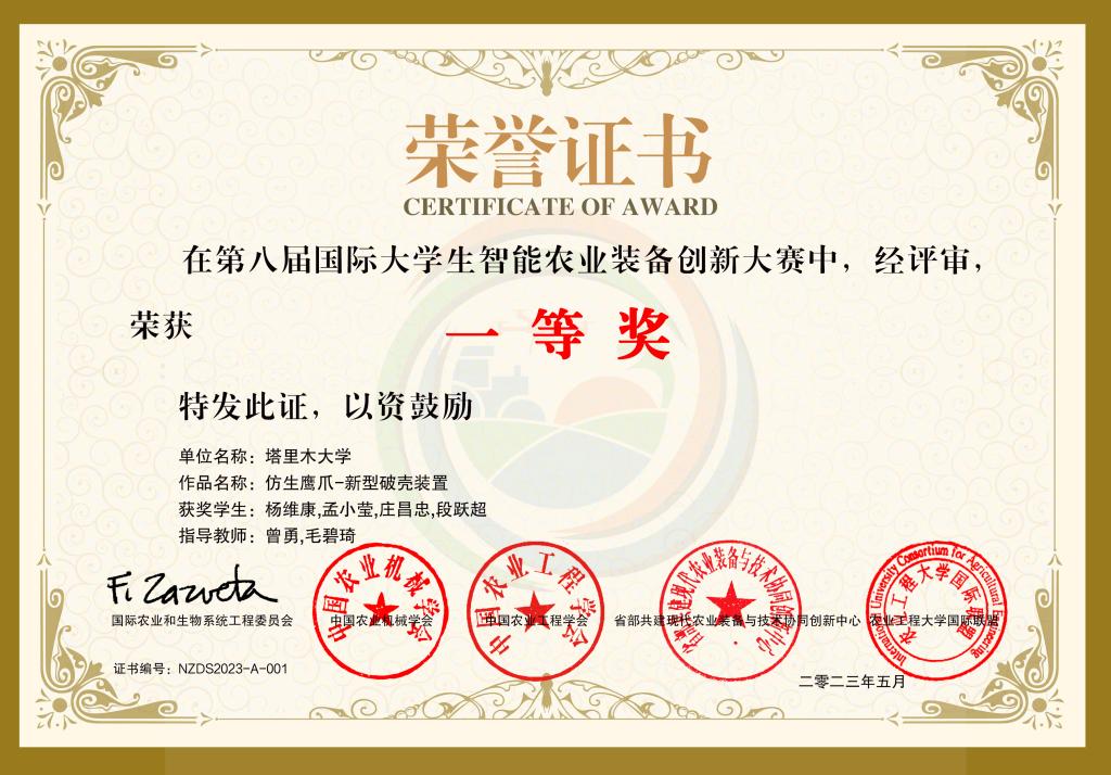 2023年5月,我校代表隊獲國際大學生智能農業(yè)裝備創(chuàng)新大賽一等獎。