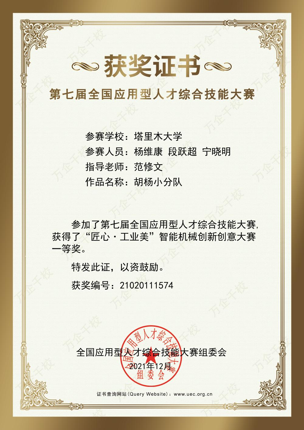 2021年12月,我校代表隊獲全國應用型人才綜合技能大賽一等獎。