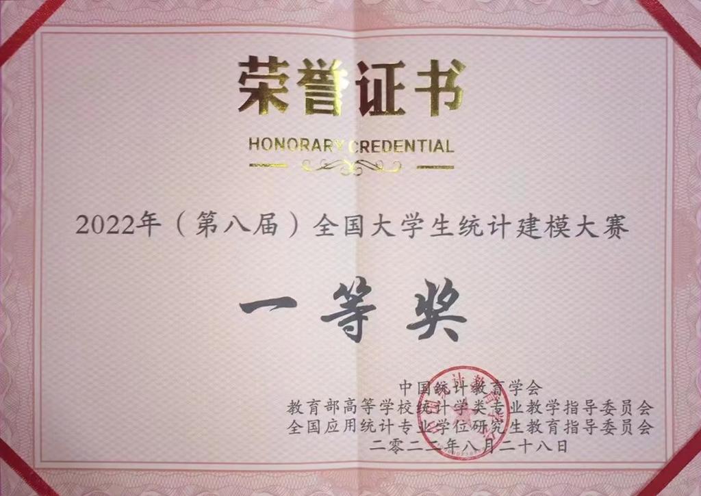 2022年8月,我校代表隊獲全國大學生統(tǒng)計建模大賽一等獎。