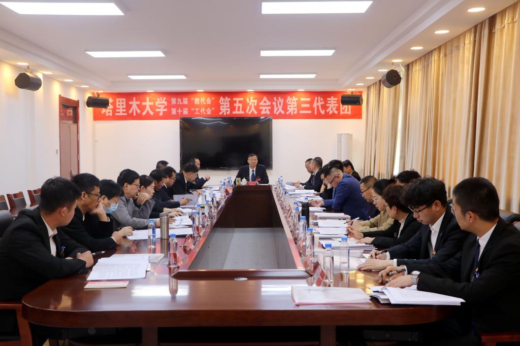 3月31日上午,塔里木大學(xué)第九屆“教代會(huì)”暨第十屆“工代會(huì)”第五次會(huì)議開(kāi)幕式結(jié)束后,全體代表、列席代表、特邀人員分成7個(gè)代表團(tuán),緊緊圍繞《學(xué)校工作報(bào)告(審議稿)》、《學(xué)校財(cái)務(wù)工作報(bào)告(審議稿)》、《學(xué)校提案工作報(bào)告(審議稿)》、《學(xué)校工會(huì)工作報(bào)告(審議稿)》、《學(xué)校工會(huì)經(jīng)費(fèi)審查報(bào)告(審議稿)》、《“十四五”規(guī)劃〈綱要〉主要指標(biāo)和重點(diǎn)專欄調(diào)整方案》(審議稿)(書(shū)面)進(jìn)行了深入熱烈的討論。校領(lǐng)導(dǎo)分別參加各討論組討論。