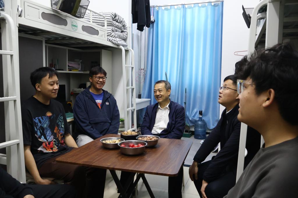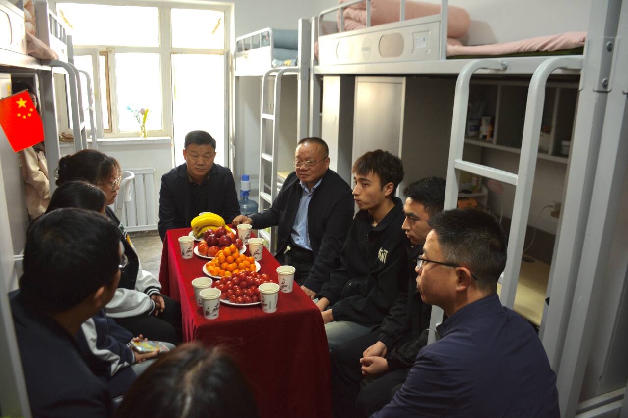 隨后,校領(lǐng)導(dǎo)來到校本部、新校區(qū)(東擴(kuò)區(qū))學(xué)生宿舍,與“三進(jìn)兩聯(lián)一交友”學(xué)生圍坐在一起,向他們致以節(jié)日的問候和美好的祝愿,詢問同學(xué)們的思想、學(xué)習(xí)、生活等情況。希望同學(xué)們樹立遠(yuǎn)大理想,提升思想境界,熱愛學(xué)習(xí)、熱愛讀書、熱愛生活、熱愛實(shí)踐,做有理想、敢擔(dān)當(dāng)、能吃苦、肯奮斗的新時(shí)代胡楊青年。