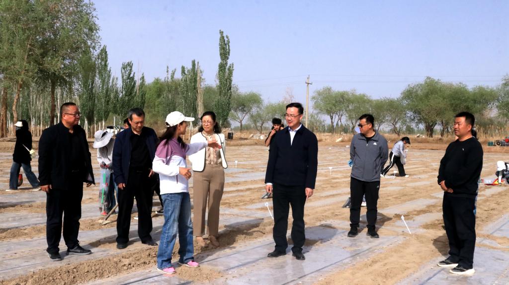 校領(lǐng)導(dǎo)聽取了相關(guān)工作進(jìn)展情況匯報(bào),與正在進(jìn)行春耕春播實(shí)習(xí)實(shí)踐的農(nóng)學(xué)院師生進(jìn)行深入交談。要求相關(guān)部門加強(qiáng)規(guī)劃建設(shè),將北二干建設(shè)成集專業(yè)實(shí)習(xí)、科研實(shí)訓(xùn)、社會(huì)實(shí)踐、科學(xué)普及、旅游觀光、生態(tài)保護(hù)于一體的生態(tài)園、科技園、產(chǎn)業(yè)園、文化園,打造南疆現(xiàn)代農(nóng)業(yè)教學(xué)科研聯(lián)合示范基地,為建設(shè)兵團(tuán)特點(diǎn)南疆特色一流大學(xué)拓展更大空間。