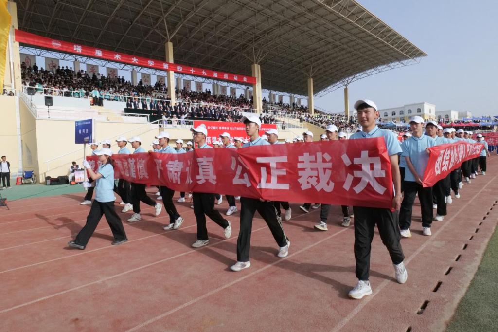 4月24日上午,在莊嚴雄壯的國歌聲中,塔里木大學第四十九屆運動會在西區運動場拉開帷幕。廣大干部師生集聚綠茵操場,共同迎接這一年一度的體育盛會。