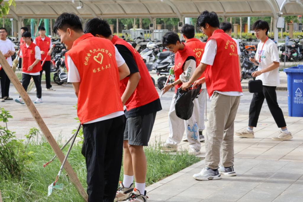 在辦公樓、教學樓、實驗樓、宿舍樓等處,師生們手拿垃圾袋、掃把、撮箕、抹布,撿拾煙頭、垃圾、飲料瓶、枯枝等雜物,清掃道路,擦拭門、墻、欄桿等,現場一派熱火朝天的勞動景象,洋溢著“我勞動,我快樂”的濃厚氛圍。
