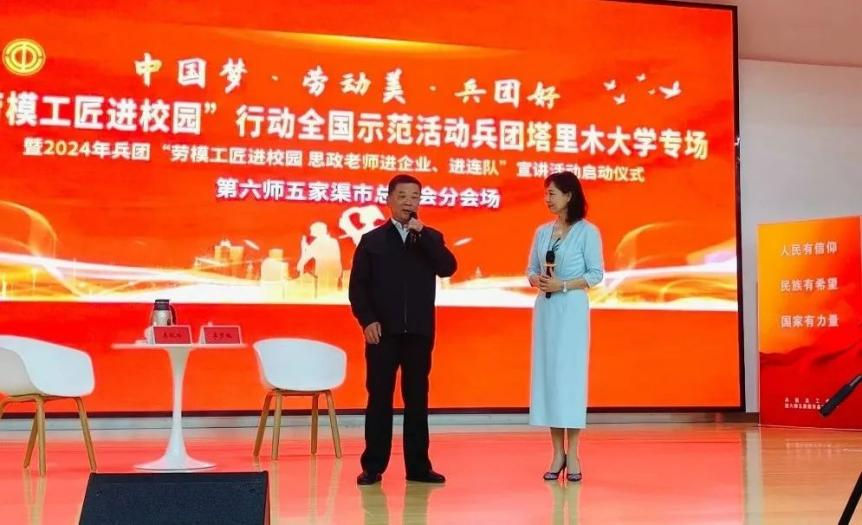 啟動儀式上,兵團總工會黨組成員、副主席黃少峰宣布“勞模工匠進校園 思政老師進企業、進連隊”宣講活動正式啟動。他指出,要深刻理解“雙進”活動的重要意義,增強做好思政工作的責任感榮譽感使命感;要做深做實“勞模工匠思政課”,大力弘揚勞模精神、勞動精神、工匠精神;要積極發揮各級工會組織優勢,推動“雙進”活動全覆蓋、更精準、取實效。