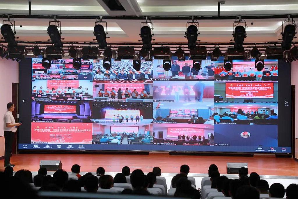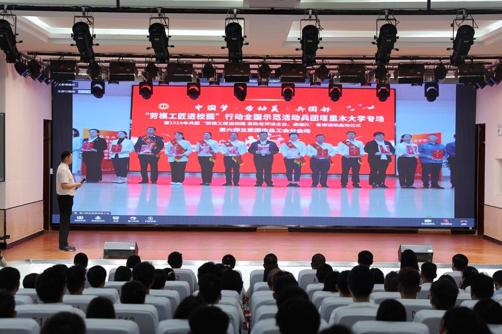 5月30日上午,由全國總工會宣傳教育部指導、兵團總工會主辦的2024年兵團“勞模工匠進校園 思政老師進企業、進連隊”宣講活動啟動儀式暨塔里木大學專場活動舉辦。本次活動在塔里木大學設主會場,各師市工會共設立13個分會場同步進行,在全國總工會、兵團總工會、塔里木大學新媒體平臺同步直播。