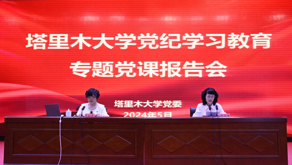 黨紀學習教育,是加強黨的紀律建設、推動全面從嚴治黨向縱深發展的重要舉措,也是強化為黨育人、為國育才導向,落實立德樹人根本任務的重要保證。5月30日下午,塔里木大學舉辦《中國共產黨紀律處分條例》專題輔導報告,旨在加強解讀和培訓、深化《條例》理解運用,提高貫徹落實《條例》的思想自覺、政治自覺、行動自覺,切實推動全校黨紀學習教育走深走實。