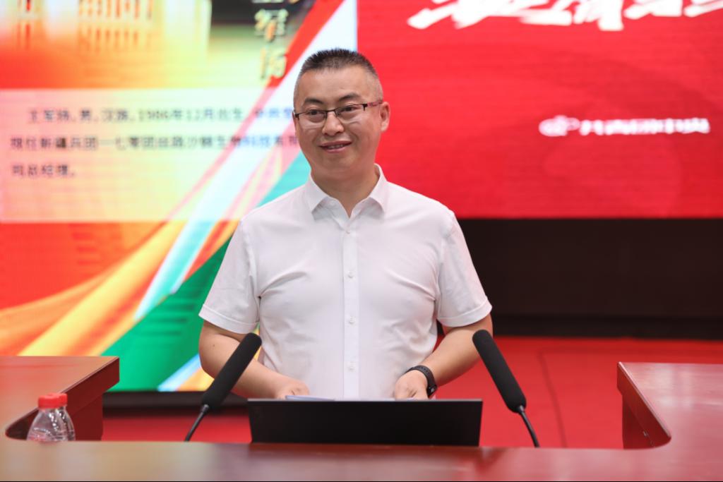 王軍揚(yáng)從“我與塔里木大學(xué)”、“我與一七〇團(tuán)”、“我與沙棘產(chǎn)業(yè)”、“我與絲路沙棘”等四個(gè)方面,講述了自己的工作經(jīng)歷和感悟,生動(dòng)詮釋了艱苦奮斗、自強(qiáng)不息、扎根邊疆、甘于奉獻(xiàn)的胡楊精神,深深感染了在場師生。王軍揚(yáng)大學(xué)畢業(yè)后主動(dòng)報(bào)名西部計(jì)劃志愿者,來到一七〇團(tuán)扎根奉獻(xiàn)、建功立業(yè),帶領(lǐng)職工群眾致富、推動(dòng)鄉(xiāng)村振興,用實(shí)際行動(dòng)踐行著兵團(tuán)精神和胡楊精神、老兵精神。王軍揚(yáng)還一一解答了在座學(xué)生的提問。