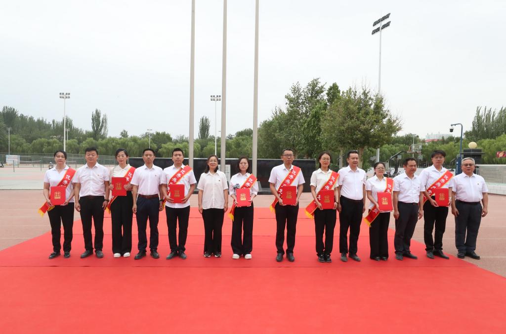 于軍宣讀了學校黨委“兩優一先”表彰決定。校領導為受表彰集體和個人進行了頒獎。