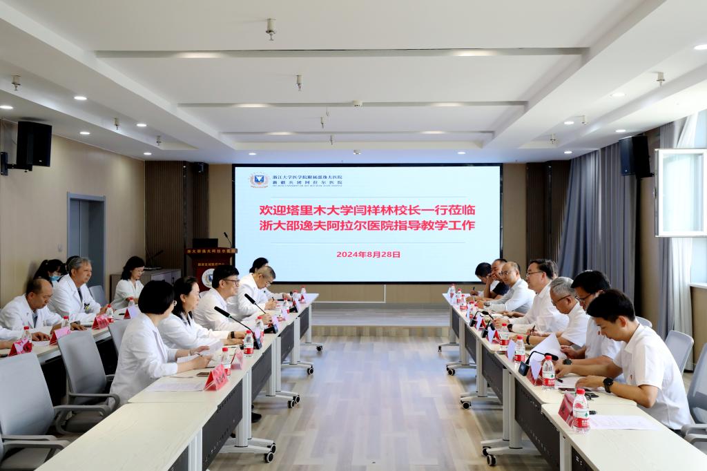 閆祥林感謝浙大邵逸夫阿拉爾醫院為學校發展的支持幫助,介紹了學校建設發展情況。他表示,一流醫院的發展需要依托一流大學的支撐,一流大學建設需要一流醫院的支持。希望雙方以醫學院建設為抓手,進一步加強臨床教學和科研等方面合作,著力打造南疆醫療衛生服務使命共同體,為南疆培養輸送更多優秀醫學人才。
