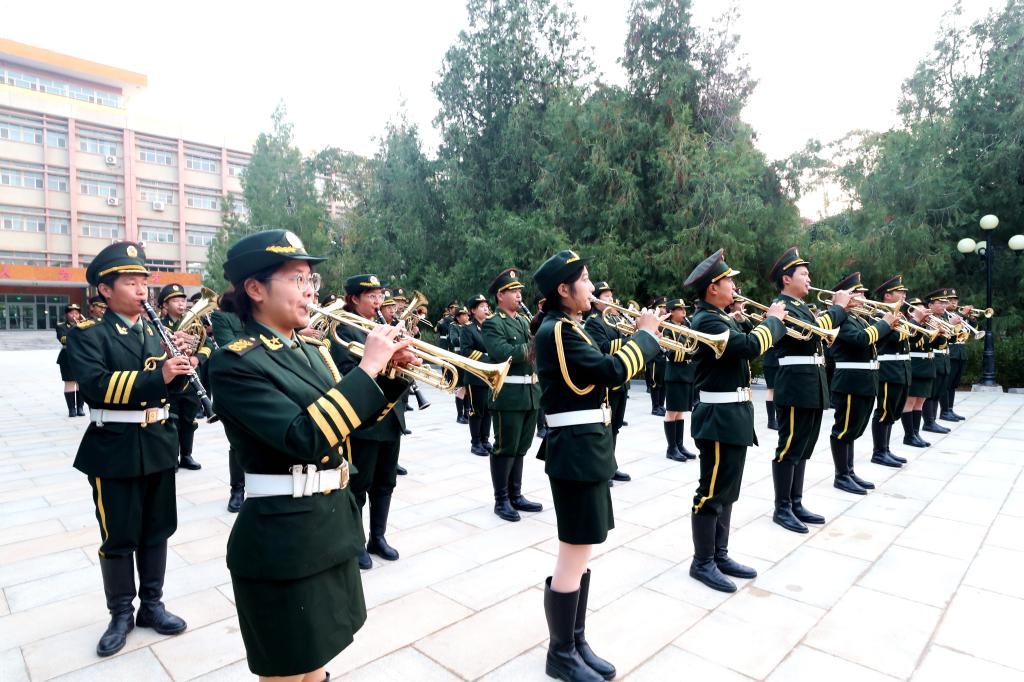 軍樂團奏響《義勇軍進行曲》,現場齊唱中華人民共和國國歌。