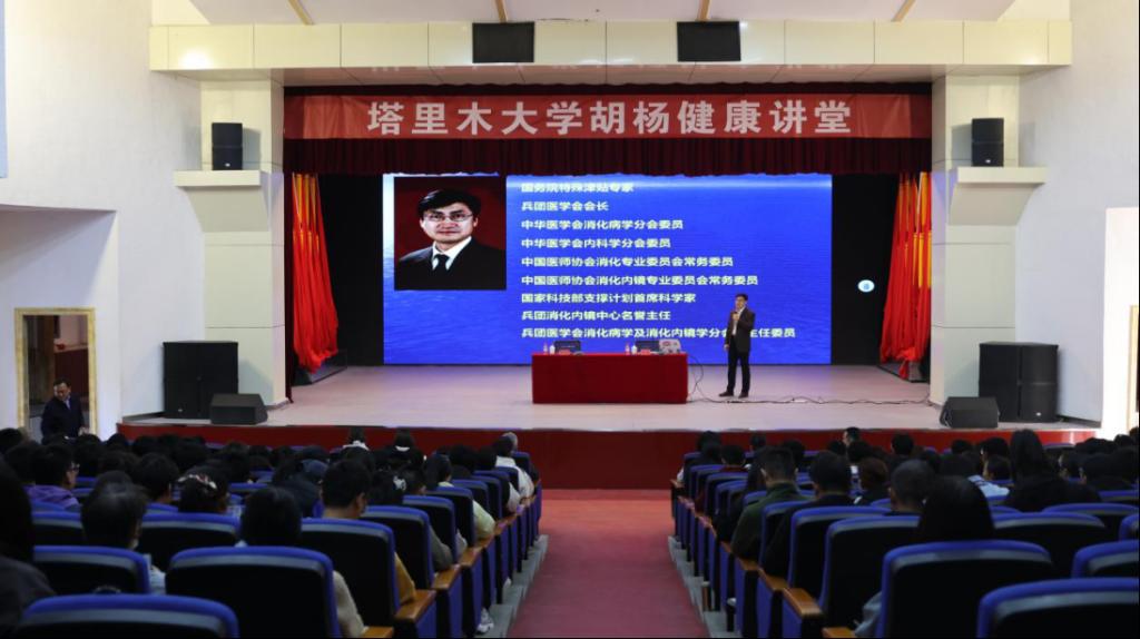 近日,塔里木大學胡楊健康講堂在大學生活動中心舉辦。兵團醫學會會長鄭勇教授受邀為我校師生作專題講座。黨委書記張愛萍等領導出席。300余名師生代表聽取講座。