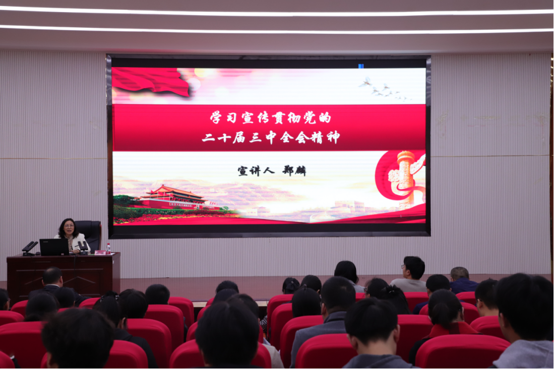 11月6日下午,學校黨委宣講團成員、黨委常委、紀委書記鄭麟深入經濟與管理學院宣講黨的二十屆三中全會精神。經管院黨委書記蔣志輝主持。