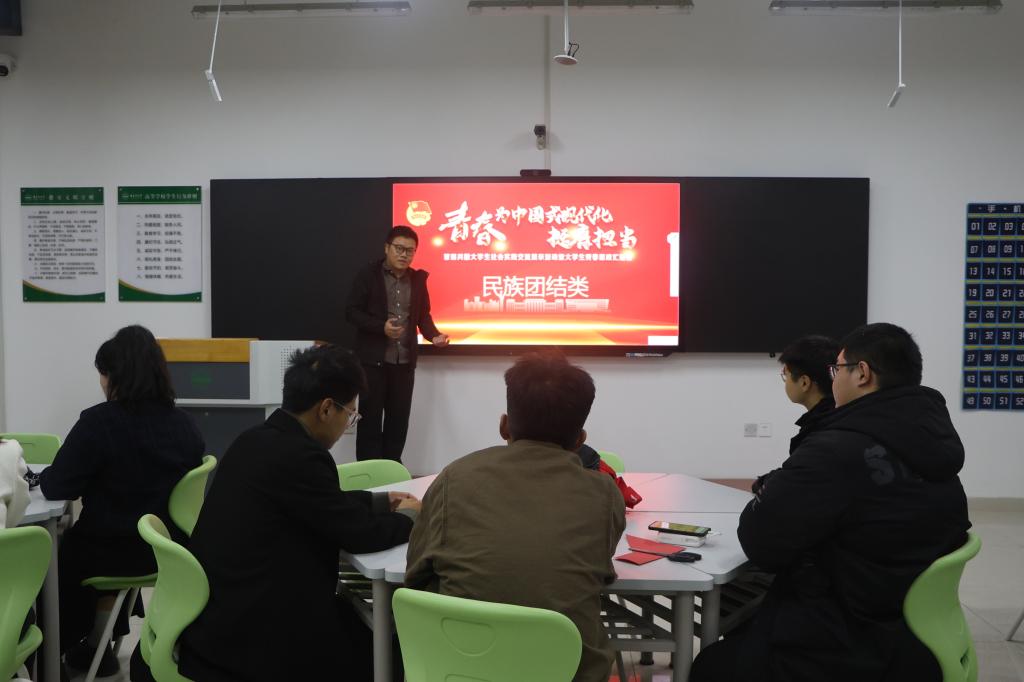 9日晚,參會師生們圍繞鄉村振興、民族團結、基層服務、理論宣講、普法宣傳五大主題,在圖書信息大樓A棟多媒體教室開展深入座談交流。