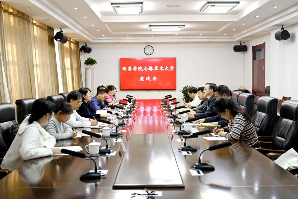 雙方圍繞有關(guān)合作事宜展開深入交流探討。會(huì)前,大家共同觀看了塔里木大學(xué)、西昌學(xué)院宣傳片。