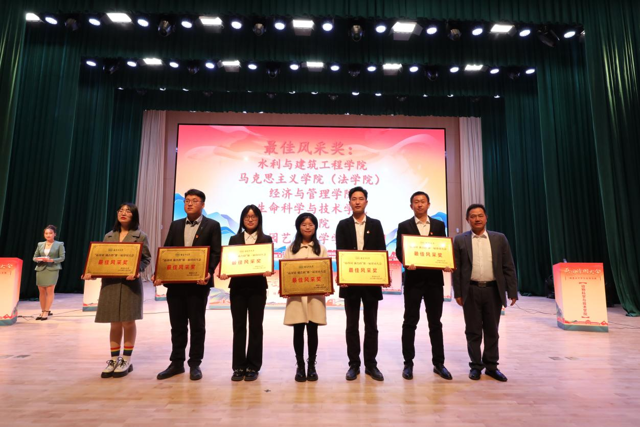 經(jīng)過激烈角逐,食品科學(xué)與工程學(xué)院獲得冠軍,化學(xué)化工學(xué)院獲得亞軍,醫(yī)學(xué)院獲得季軍。水利與建筑工程學(xué)院等6個(gè)學(xué)院獲得“最佳風(fēng)采獎”,信息工程學(xué)院等5個(gè)學(xué)院獲得“優(yōu)秀組織獎”,李永健等24人獲得“詩詞達(dá)人”。與會領(lǐng)導(dǎo)為獲獎集體和個(gè)人進(jìn)行了頒獎。