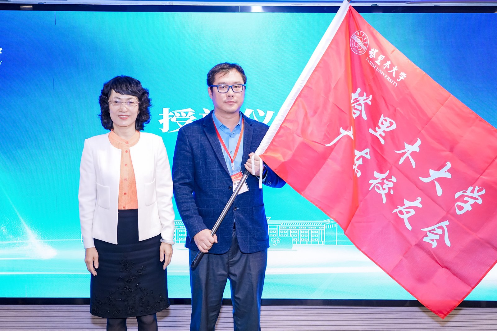 張愛萍向大會舉行表示熱烈祝賀,向長期以來關心支持母校發展的各位校友表示誠摯的感謝,介紹了學校發展變化和取得成績。她指出,2024年,學校新成立了烏魯木齊校友會、伊犁校友會,今天又迎來了廣東校友會新一屆理事會的成立。希望新一屆校友會加強與母校的聯系,共同探索校企合作新模式新路徑,實現資源共享、優勢互補,共同推動學校事業與校友工作蓬勃發展。她為第二屆校友會授旗,為新一屆校友會理事會成員頒發了聘書。