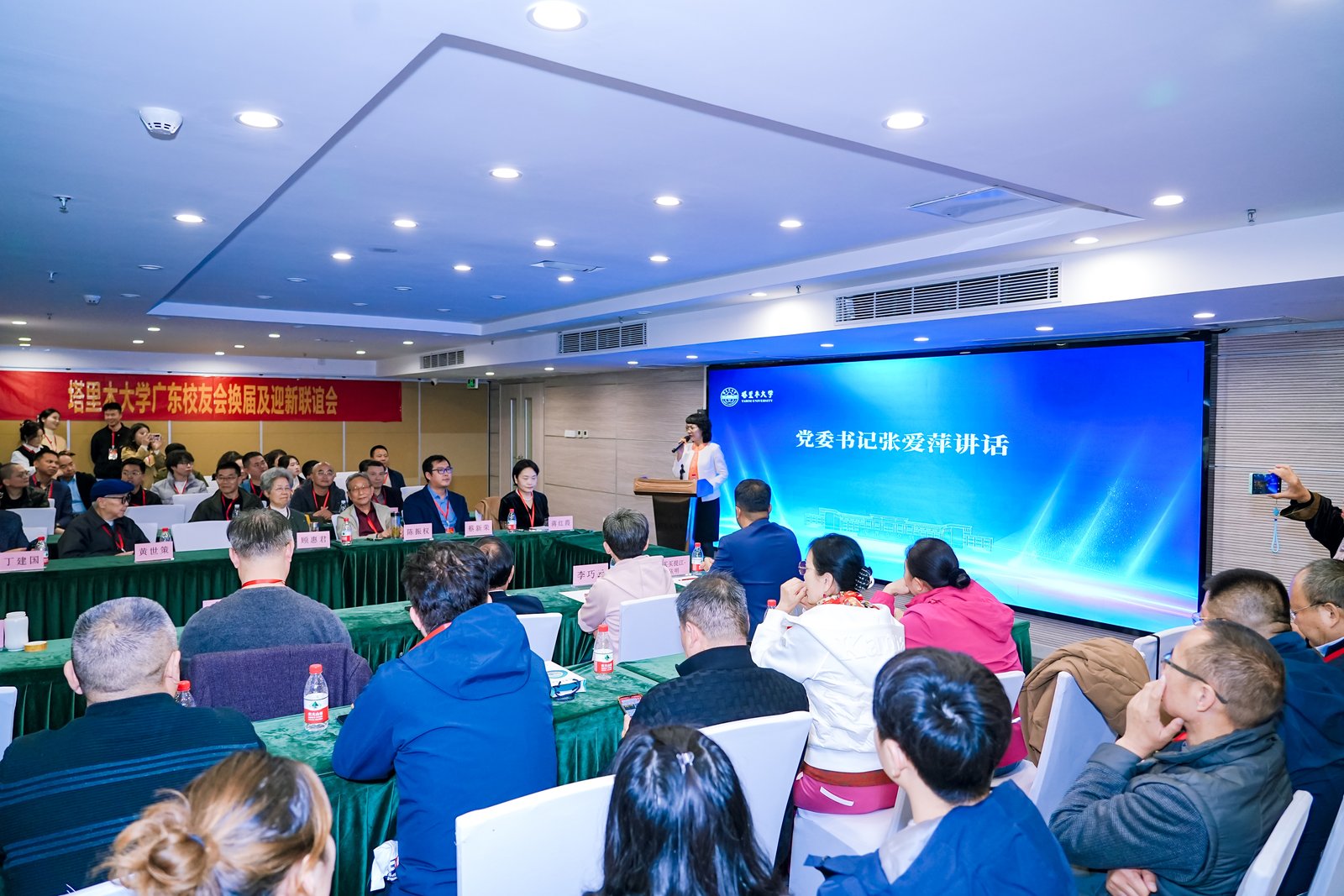 塔里木大學黨委書記張愛萍,原黨委書記趙光輝,黨委常委、副校長張宏榮出席。廣東校友會第一屆、第二屆理事會成員、塔大校友們歡聚一堂,感念母校恩情,共話未來發展。會議由獸醫87屆校友蔣紅霞主持,在廣州市天河區天娛廣場東塔12樓會議室舉行。
