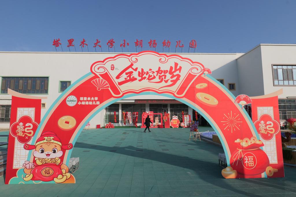 金蛇納福,萌娃迎新。12月31日上午,塔里木大學小胡楊幼兒園舉辦迎新年慶元旦游園活動。黨委副書記、校長閆祥林,黨委常委、副校長林松濤來到活動現場,向孩子們和幼兒教師們致以新年的誠摯問候和美好祝福。