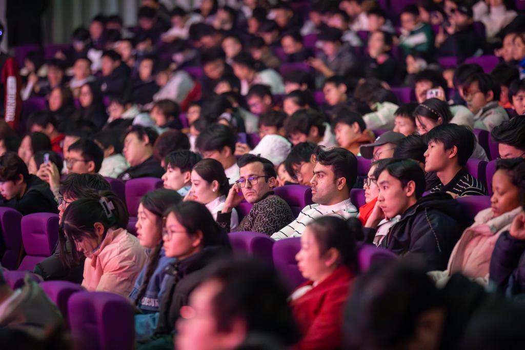 校領(lǐng)導(dǎo)張愛萍、閆祥林、于軍、石長青、林松濤、萬傳星、張宏榮、謝建新、張偉信,與援疆干部、銀齡教師、國際留學(xué)生、各學(xué)院師生代表共同觀看。