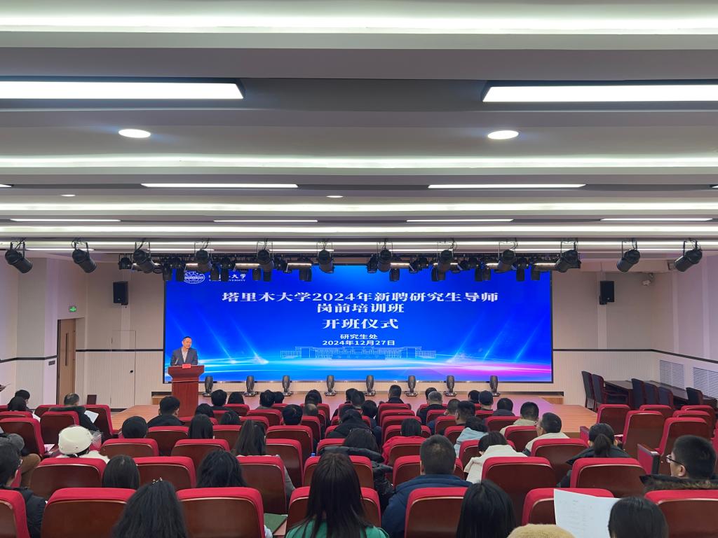 12月27日-28日,塔里木大學(xué)舉辦2024年新聘研究生導(dǎo)師崗前培訓(xùn)班。黨委常委、副校長(zhǎng)萬(wàn)傳星出席開班式。新聘校內(nèi)碩博士研究生導(dǎo)師,相關(guān)部門、學(xué)院領(lǐng)導(dǎo),教師代表參加。開班式由研究生處副處長(zhǎng)張礫主持,在研究生教學(xué)樓117報(bào)告廳舉行。