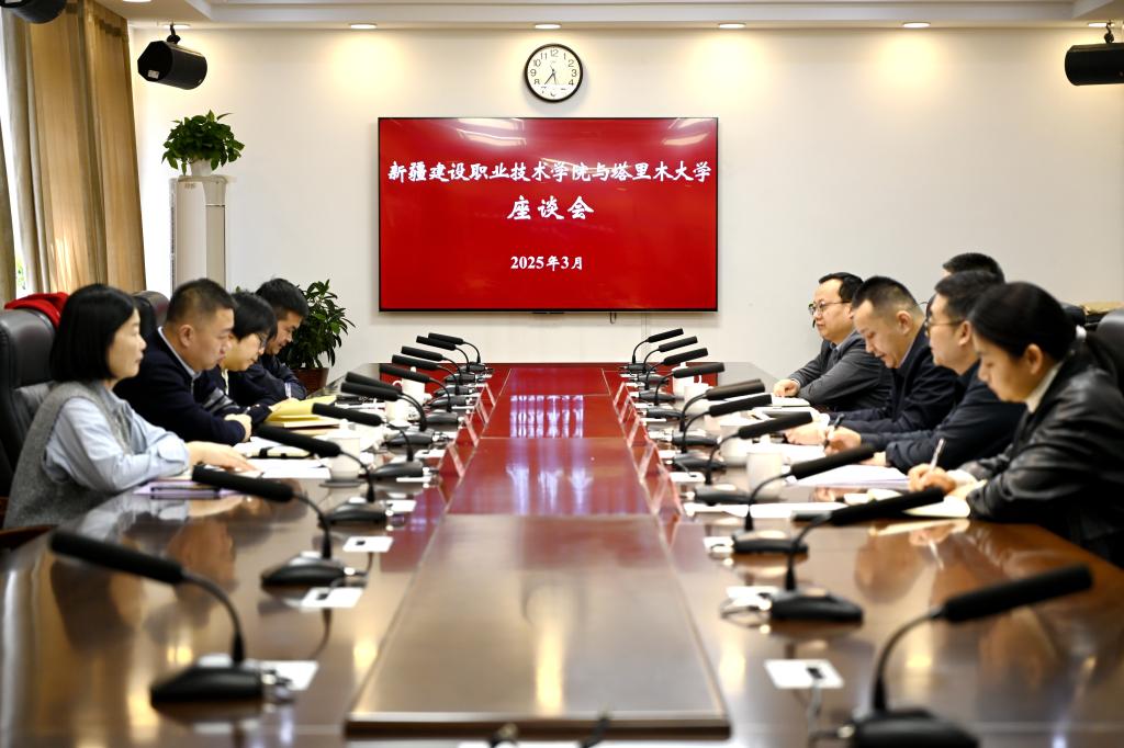 雙方圍繞校際合作事宜進(jìn)行深入交流探討。會前,大家共同觀看了塔里木大學(xué)、新疆建設(shè)職業(yè)技術(shù)學(xué)院宣傳片。