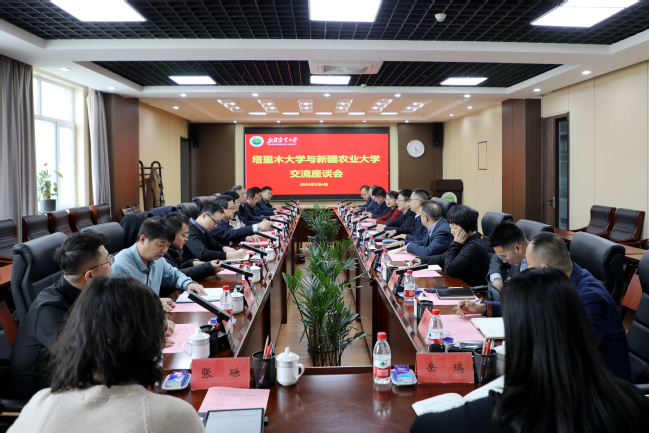 張愛萍感謝新疆農業大學長期以來給予塔里木大學的支持幫助,介紹了學校的發展歷程和辦學規模。她表示,雙方歷史淵源深厚,合作基礎良好。希望雙方進一步深化合作交流,拓寬合作領域,取得更多務實成果,在服務區域經濟社會高質量發展中展現新作為。