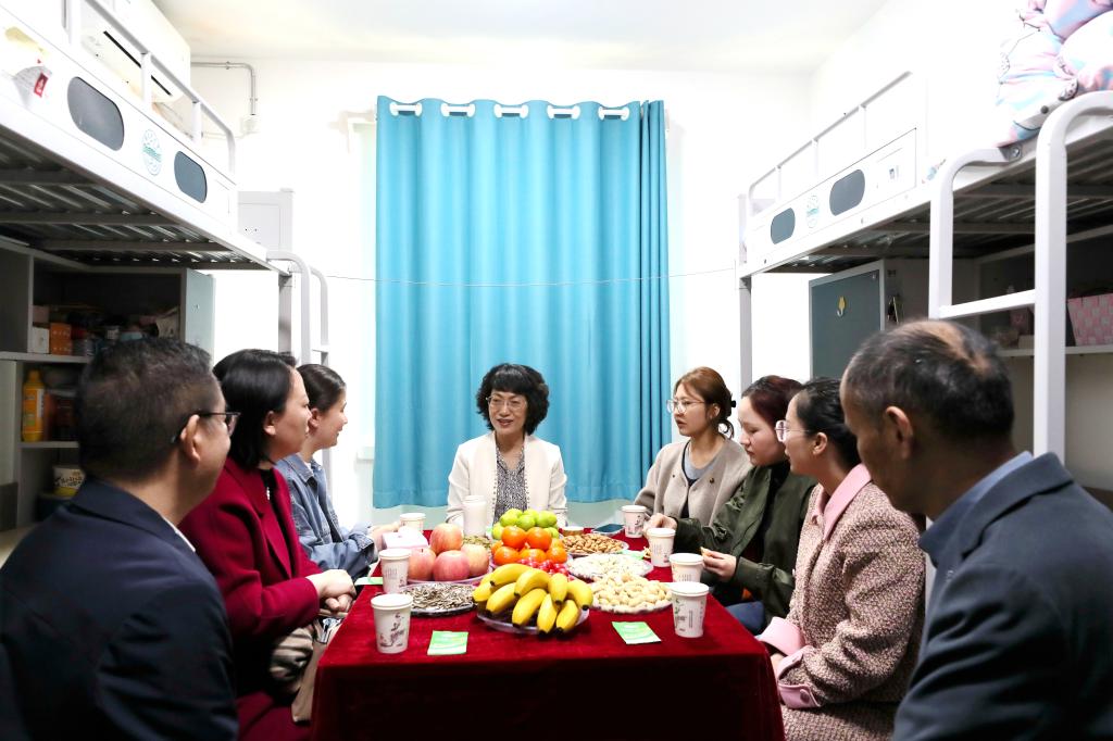 校領導先后來到東區學生宿舍、西區學生宿舍,與同學們坐在一起親切交流,詳細了解大家的學習生活情況,耐心傾聽大家的心聲。叮囑同學們要夯實專業本領,提升綜合素質,努力成長為德才兼備的新時代青年;學院要關注學生日常生活,做好學生服務工作,為學生健康成長保駕護航。