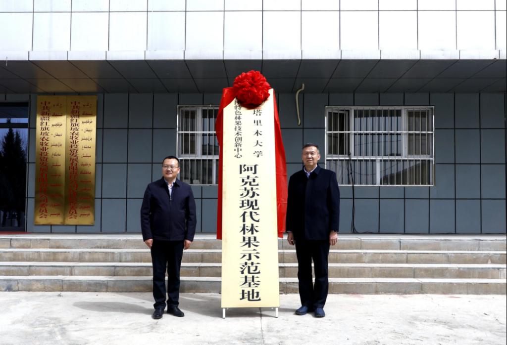 校領導來到新疆紅旗坡農牧業投資發展有限責任公司考察調研,受到公司黨委書記、董事長王文彬熱情接待。于軍、王文彬為“阿克蘇現代林果示范基地”揭牌。
