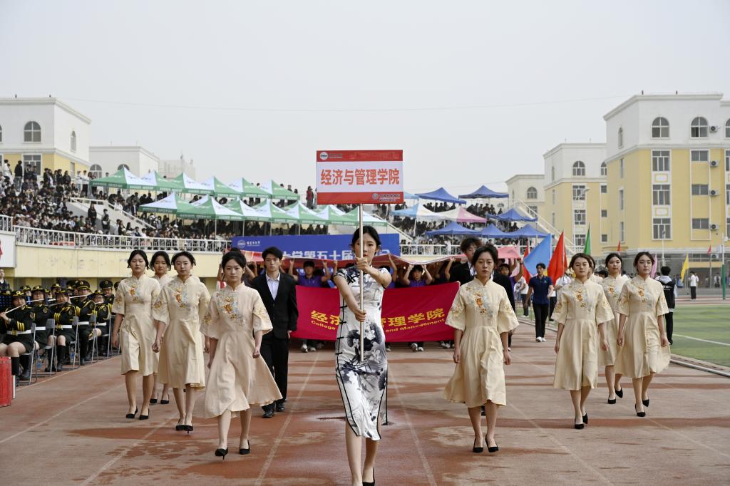 開幕式上,伴隨著激昂的《運動員進行曲》,國旗方隊、校旗方隊、彩旗方隊、裁判員方隊昂首闊步,走過主席臺;研究生方隊、留學生方隊和17個學院方隊,身著各式服裝,手持特制道具,喊著響亮口號,在主席臺前駐足展示,精心編排的舞蹈節目、創意十足的隊形變換,充分展現了胡楊學子的蓬勃朝氣和青春風采,贏得在場師生的陣陣掌聲和喝彩。
