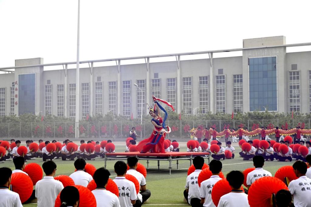 經濟與管理學院團體操表演,分為《送你一束沙棗花》《兵團進行曲》《我是一棵胡楊》三個篇章,通過舞蹈、朗誦等形式,生動展現了民族團結、衛國戍邊和艱苦奮斗的生動故事。機械電氣化工程學院團體操表演,圍繞“鼓動乾坤·鐵血入場”“絲路華章·敦煌之韻”“家國同心·數字史詩”“青春機電·奔向未來”四個部分,結合節奏鏗鏘的鼓聲,衣袂翩躚的舞蹈,豐富多樣的隊形,充分彰顯了學校高質量發展的堅定信心和決心。