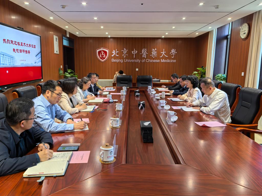 4月28日,黨委書記張愛萍,黨委副書記于軍,黨委常委、副校長林松濤等領導赴北京中醫(yī)藥大學交流訪問,受到北京中醫(yī)藥大學黨委書記王瑤琪,黨委副書記張繼旺等領導熱情接待并進行座談交流。